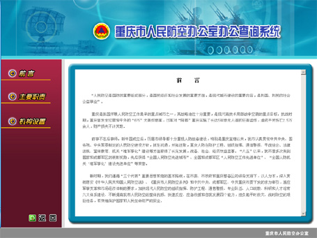 (十)承担国防动员委员会人民防空办公室的工作;承办市政府交办的重庆动画制作其他事项。 战时职责按国务院、中央军委的有关规定执行。