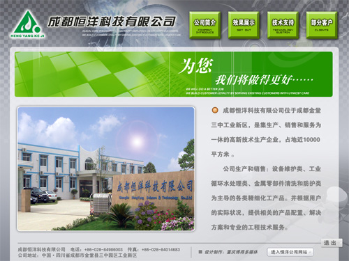成都恒洋科技有限公司地处安定和谐的四川-成都市,详细地址四川成都市成都金堂三中工业园区新区金凤路219号,重庆多媒体公司这里与周边城市交通便利,区位优势明显。澳门博彩官网主要提供缓蚀剂; 杀菌灭藻剂; 阻垢剂; 工业用清洗剂;等相关产品与服务。本企业经营面积充裕、产能大、产品及服务质量过硬,目前企业经营情况良好。在日常经营过程中澳门博彩官网安时完税、依法经营、爱国爱岗、产业报国。